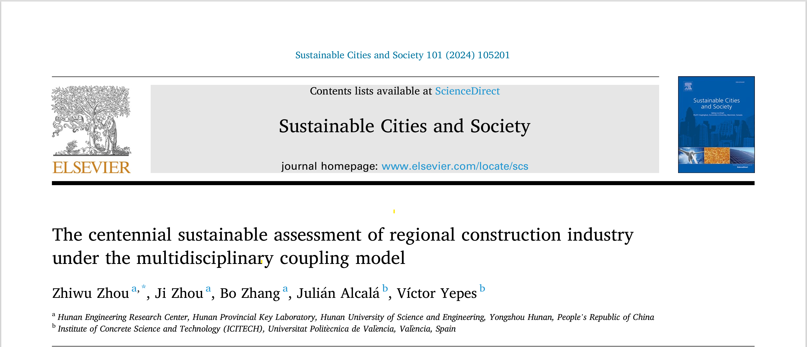 本网讯(通讯员 王晶晶)近日,国际性学术期刊《Sustainable Cities and Society》(中科院TOPQ1区、JCRQ1、IF=11.7)在线发表了我院周志武博士应用多学科耦合模型研究中国建筑业百年(2000-2100年)可持续发展数据,文章标题为“The centennial sustainable assessment of regional construction industry under the multidisciplinary coupling model”。周志武博士为第一作者和通讯作者。