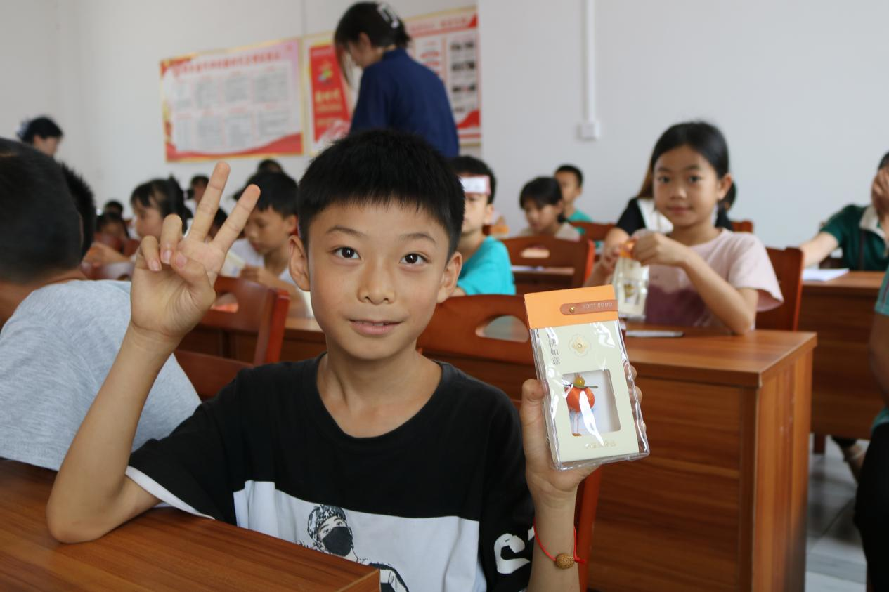 大学生们提前准备了与校园文化相关的文创产品,开展女书香囊DIY环节,在每份精心设计的香囊内放有二维码卡片,小朋友们用手机扫描即可看到实践团成员们用女书设计书写的励志寄语,“好生活方才起步,甜日子还在后头”“行以求知,学以致用”……凝聚着团队成员对瑶乡孩子们的殷切期望和由衷祝福。