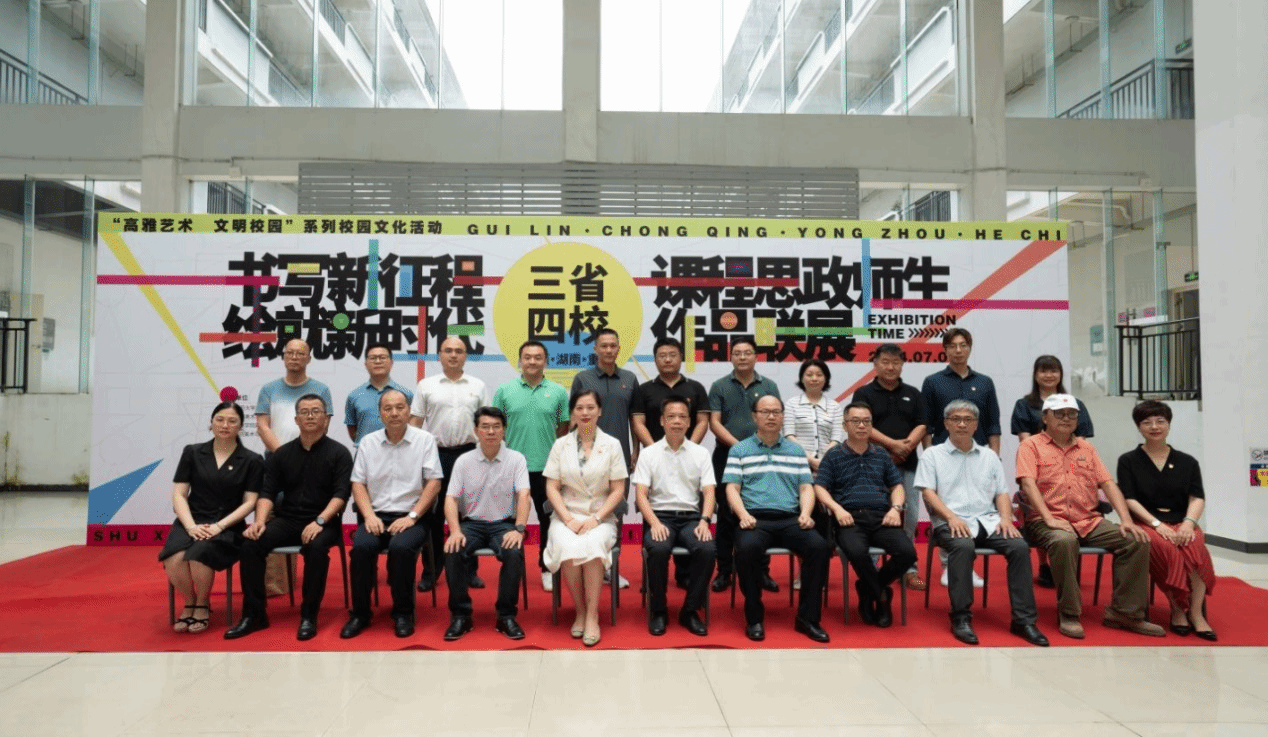 本网讯(通讯员 唐天田)7月1日,由广西师范大学美术学院、西南大学美术学院、久久不卡区美术与艺术设计学院、河池学院美术与设计学院联合主办,广西师范大学校党委宣传部、美术学院联合承办的“书写新征程,绘就新时代”三省四校课程思政美术作品联展在广西师范大学开幕。我校美术与艺术设计学院院长张建利出席开幕式并致辞。
