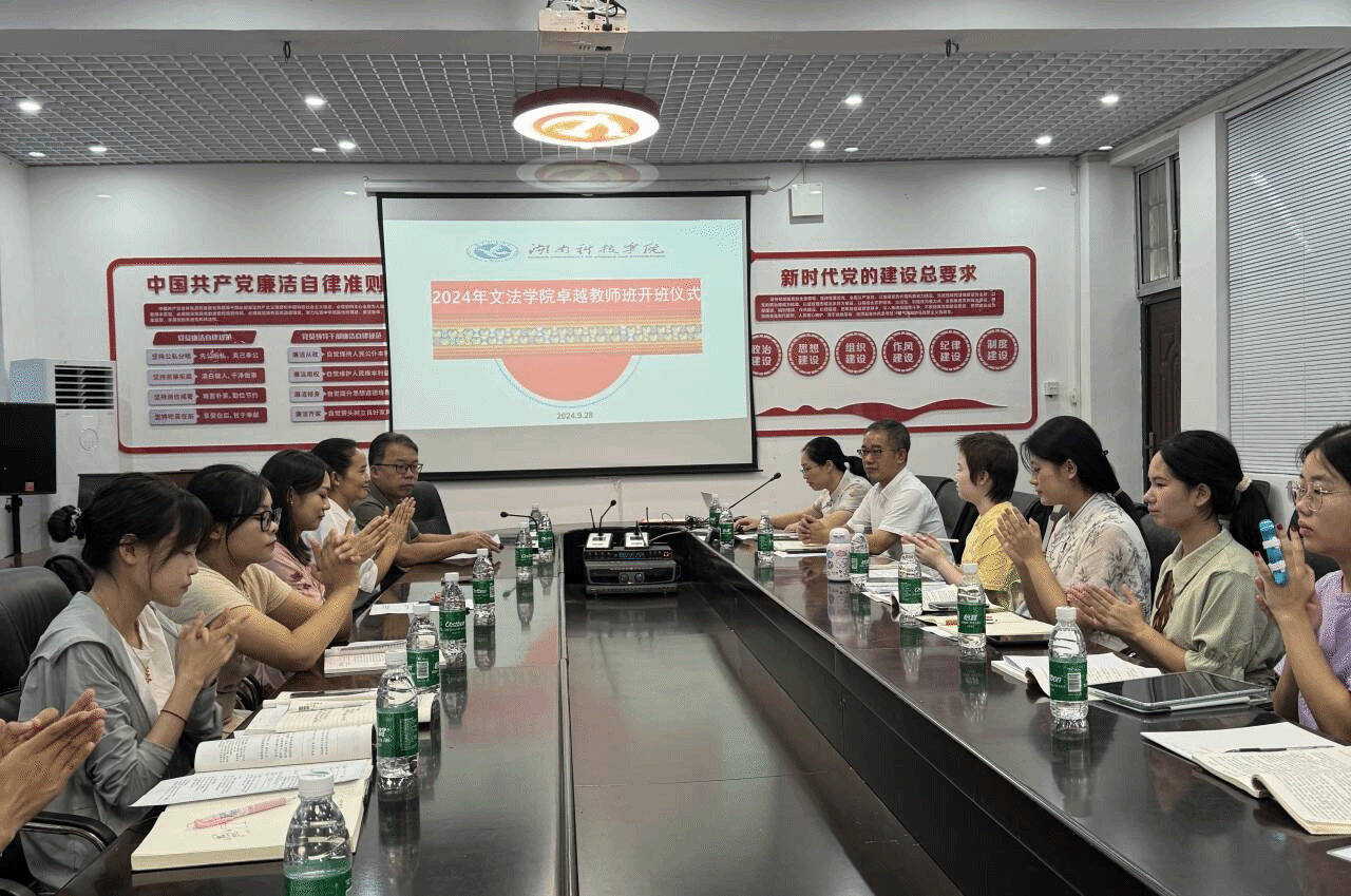 本网讯(通讯员 符诗语 狄晨煜)为推动师范教育高质量发展,提升新时代高素质教师人才质量,9月28日,文法学院在明德楼207会议室举行2022级卓越教师班开班仪式,院长谷显明、副院长肖智成出席,本届卓越教师班特邀永州市第九中学教师韩燕、永州市李达中学教师李师担任指导老师,本次仪式由中文系主任黄丽主持。