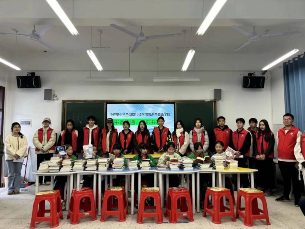 本网讯(通讯员 李乐 赵耀)为进一步整合社区教育资源,增添书香校园氛围,同时有效地分配、利用图书资源,11月19日,音乐与舞蹈学院青年志愿者服务团前往杨梓塘小学,开展了一场别具意义的“书香传递,知识共享”书籍捐赠活动。