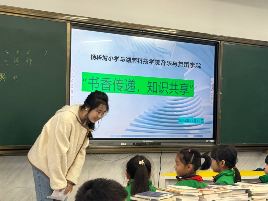 此次捐赠活动得到了学校广大师生及教工家属的热烈响应和积极参与,校园内设置了少儿书籍募捐点,捐书的人络绎不绝,大家纷纷捐出自己的闲置书籍,共同参与到这场知识传递的行动中来。同学们将整理好的书籍捐赠给杨梓塘小学图书馆,并在杨梓塘小学开展了推广阅读活动。