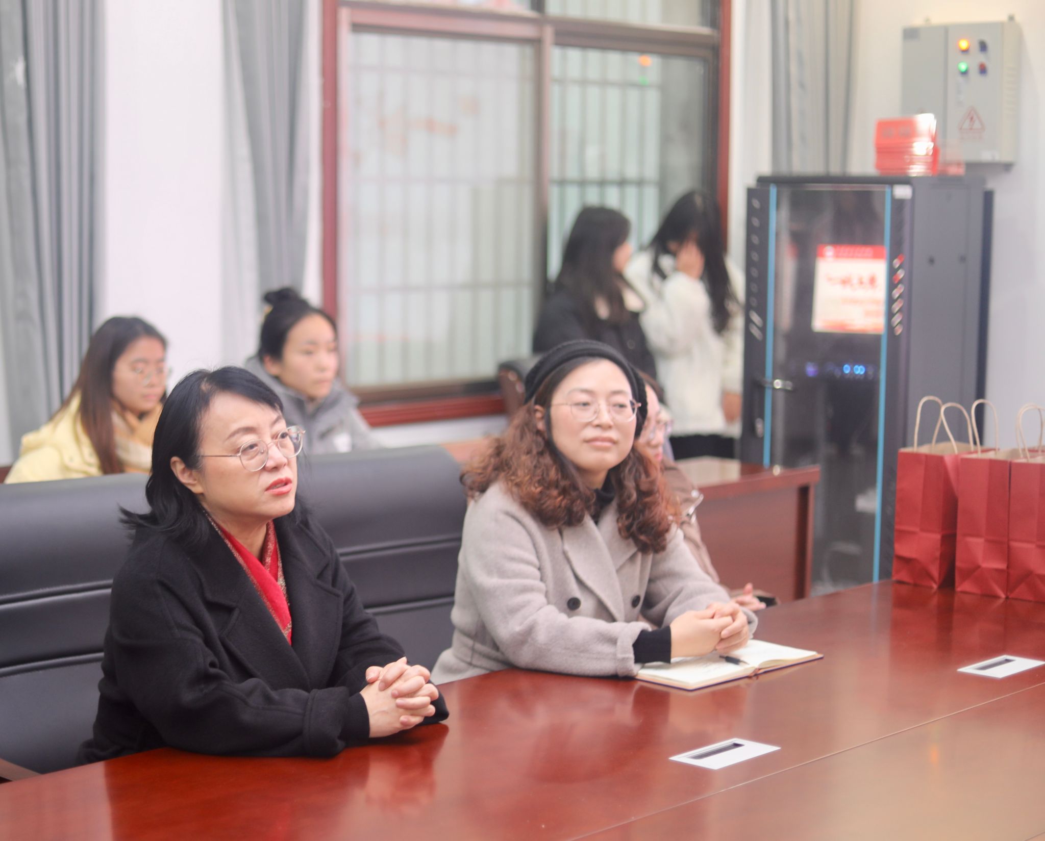 本网讯(通讯员 吴美林)12月10日,马克思主义学院院长廖雅琴、党总支书记陈玉皎、党总支副书记高丹、毕业年级辅导员、21级班主任教师在鹤鸣楼405会议室为该院考研学子送上温馨考研“加油套餐”。