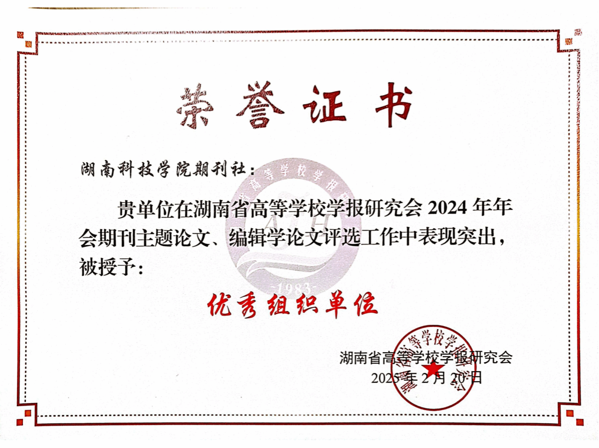 此外,学报编辑部还荣获“优秀组织奖”,这是对编辑部整体工作的高度认可,也彰显了学报编辑部在推动学术交流、促进学科发展方面作出的积极贡献。