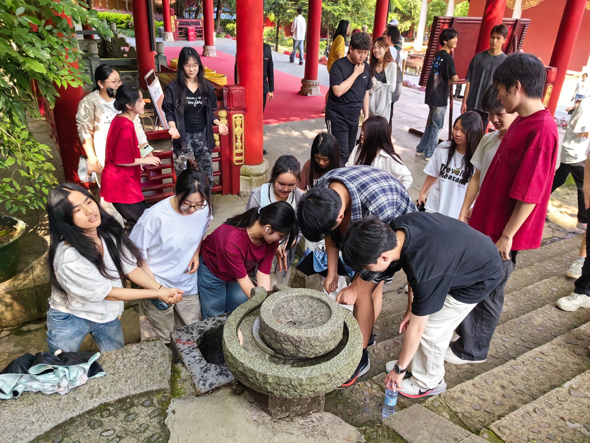 在双牌青龙洞景区,学生们见识了自然景观的科学保护与沉浸化游览设计;在双牌花千谷月湖景区,体会了主题IP花卉资源的创意融合,让学生精准定位景区特色,以差异化运营提升游客体验;在理学鼻祖周敦颐故居,“出淤泥而不染”的君子品格,不仅是文化瑰宝,更为文旅融合提供独特IP,使学生深刻体会到历史遗迹的保护开发,需深挖文化内核,让传统文化以创新姿态“活”在现代旅游场景中,实现文化传承与旅游发展的双赢;在宁远舜帝陵,学生们瞻仰舜帝陵,感受历史文脉在文旅场景中的活化传承;走访下灌村,体会古村风貌与休闲农业的巧妙结合,使学生深知深挖在地文化价值,创新文旅业态融合的重要性。