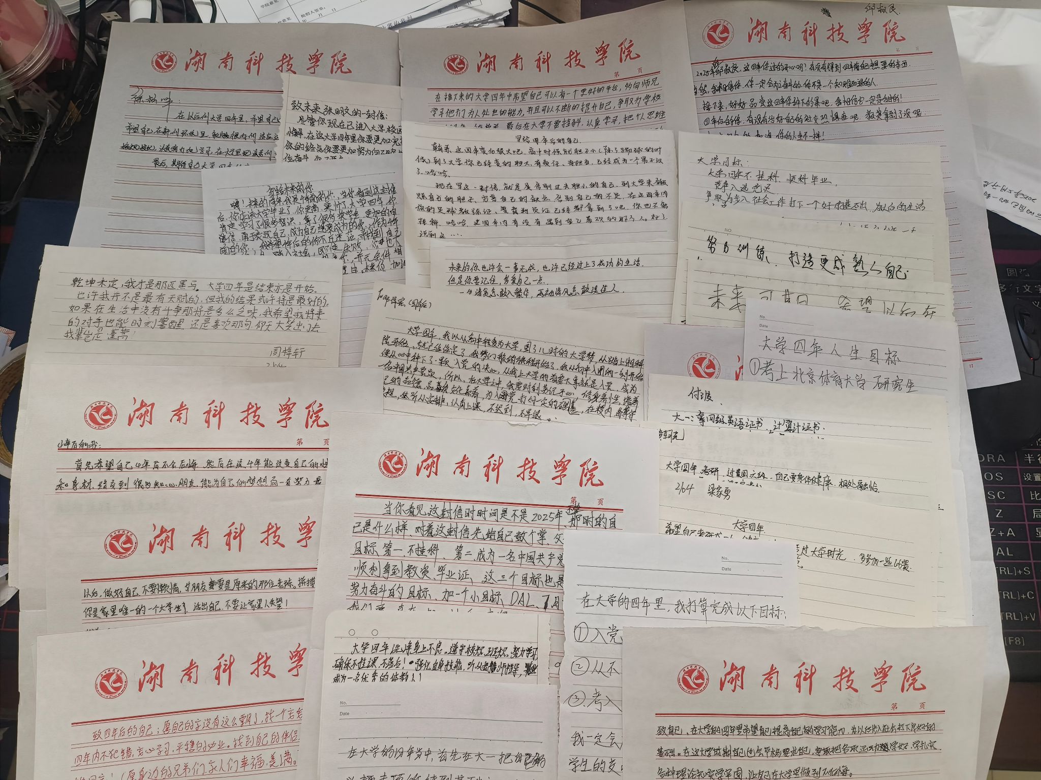 “每封信都承载着同学们的心声,虽然有的字数不多,但是里面装着对未来的期许。”2104班班主任黄婉回忆起四年前的第一次班会历历在目,“当时我们给新生们抛出两个问题,你能给学校带来什么?你希望四年后能从学校带走什么?大学四年,是人生发展的关键阶段,我们要认真思索规划自己的大学生活。”