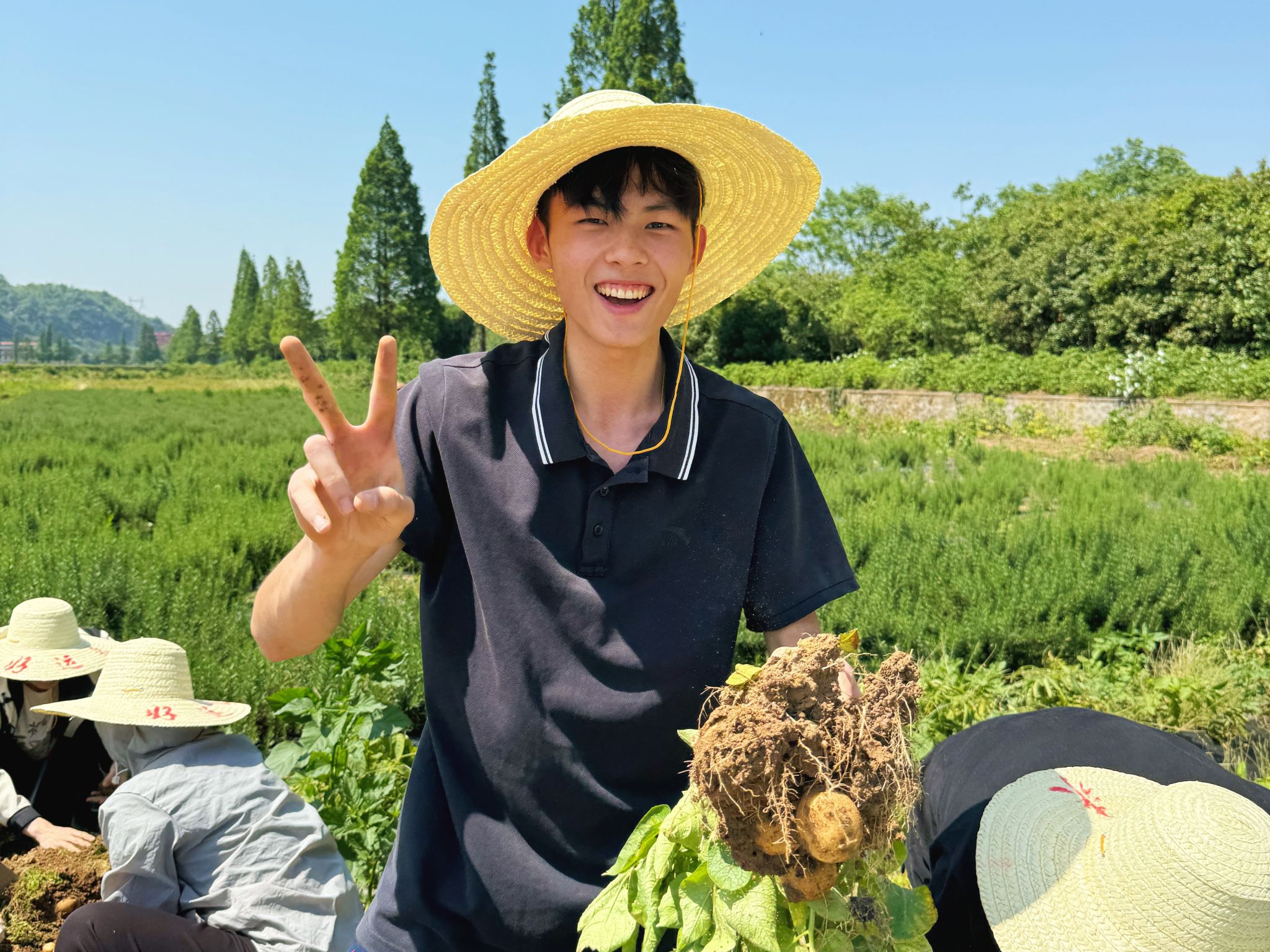活动伊始,学生们通过抽签进行分组,并且对应各自挖土豆的区域。“知之者不如好之者,好之者不如乐之者,”在辅导员和永州市农科所工作人员的悉心指导下,同学们撸起袖子,手持工具,在田地间奋力劳作,泥土沾满裤脚,汗水打湿后背,他们在劳动中感受到丰收的喜悦,也深刻体悟到农业劳作的艰辛。
